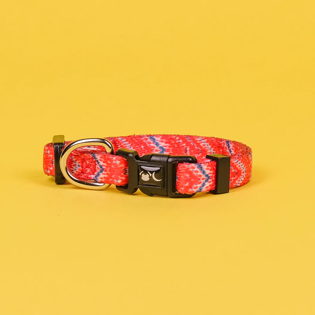 Brought to you be Neon Moon Pet Boutique, the Tod Dog Collar hosts an attention grabbing red and blue chevron pattern for your stand out dog.